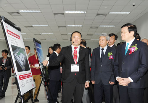 Chủ tịch nước Trương Tấn Sang nghe giới thiệu về Tổ hợp LG-Hải Phòng