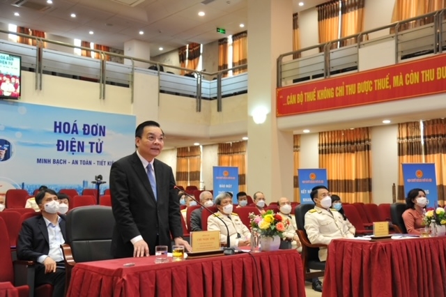 Phát biểu tại điểm cầu Cục Thuế TP. Hà Nội, ông Chu Ngọc Anh, Chủ tịch UBND TP. Hà Nội cho biết: TP. Hà Nội rất vinh dự là một trong 6 thành phố triển khai hóa đơn điện tử đầu tiên trong cả nước. Với các lợi ích mà hóa đơn điện tử mang lại, UBND thành phố xác định rõ tầm quan trọng của việc triển khai hóa đơn điện tử trong công cuộc chuyển đổi số. Ngay sau khi nhận được Quyết định số 1830/QĐ-BTC của Bộ Tài chính về việc triển khai áp dụng hóa đơn điện tử tại TP. Hà Nội, UBND đã thành lập Ban Chỉ đạo và Tổ giúp việc Ban chỉ đạo triển khai áp dụng hóa đơn điện tử tại thành phố.