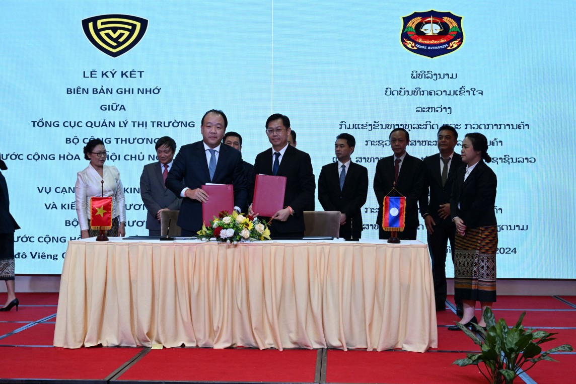 | Bộ trưởng Nguyễn Hồng Diên cùng Bộ trưởng Malaithong Kommasith chứng kiến lễ ký kết Biên bản ghi nhớ hợp tác giữa Tổng cục Quản lý thị trường (Bộ Công Thương Việt Nam) và Vụ Cạnh tranh và Kiểm tra thương mại (Bộ Công Thương Lào) |