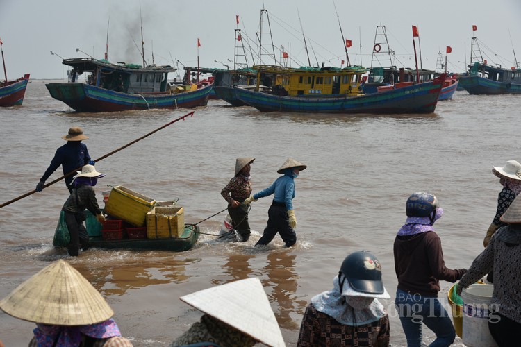 | Cảnh mua bán nhộn nhịp tại chợ cá Giao Hải |