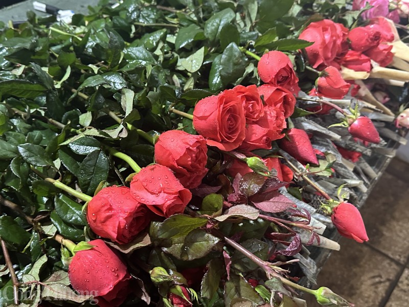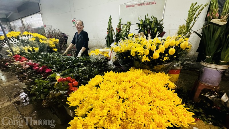 | Tại chợ Vũ Xuân Thiều (Long Biên, Hà Nội), tiểu thương nhập đa dạng các loại hoa phục vụ nhu cầu người mua như hoa cúc, hoa hồng, hoa ly, hoa đào,... |