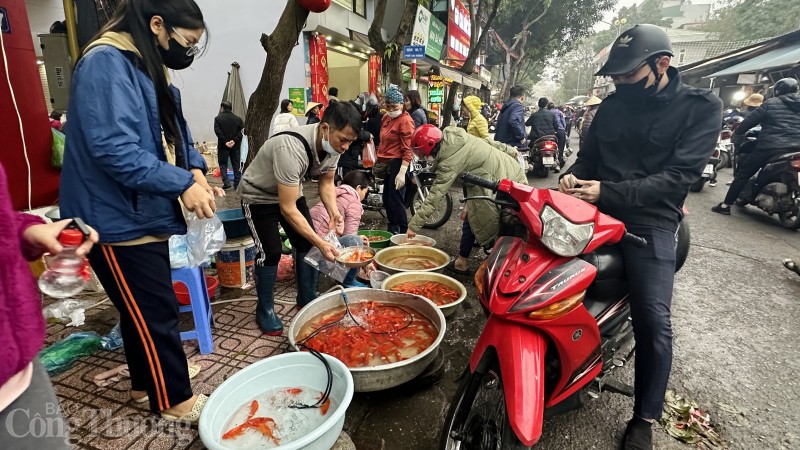 Sáng sớm 23 tháng Chạp, các khu chợ dân sinh đã tấp nập người dân sắm lễ tiễn ông Công ông Táo về trời. Các mặt hàng dồi dào đáp ứng nhu cầu người mua.