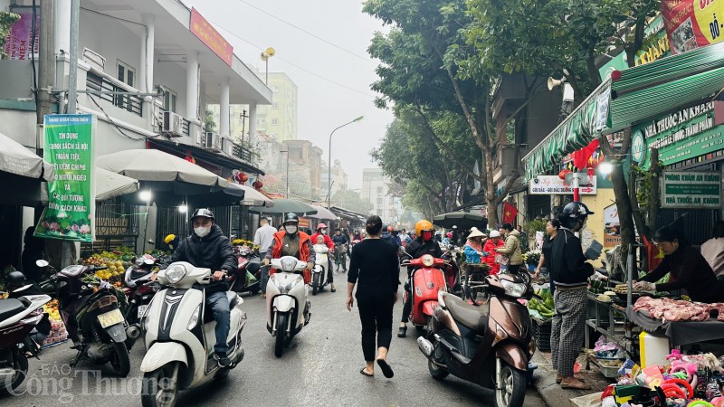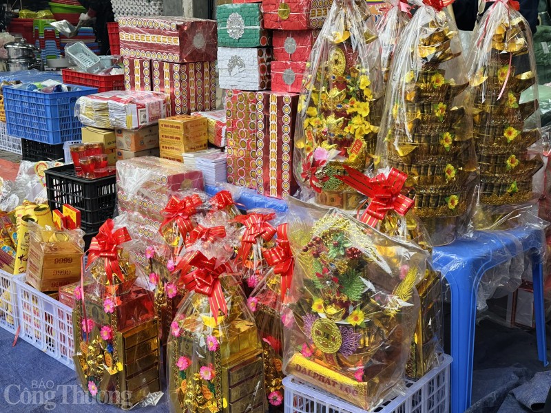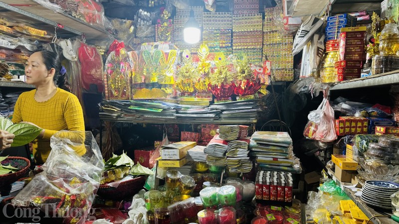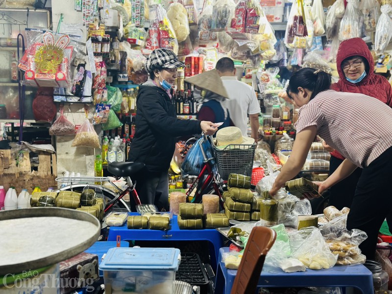 | Từ sáng sớm, chợ dân sinh 230 (Long Biên, Hà Nội) đã tấp nập người mua sắm lễ cúng |