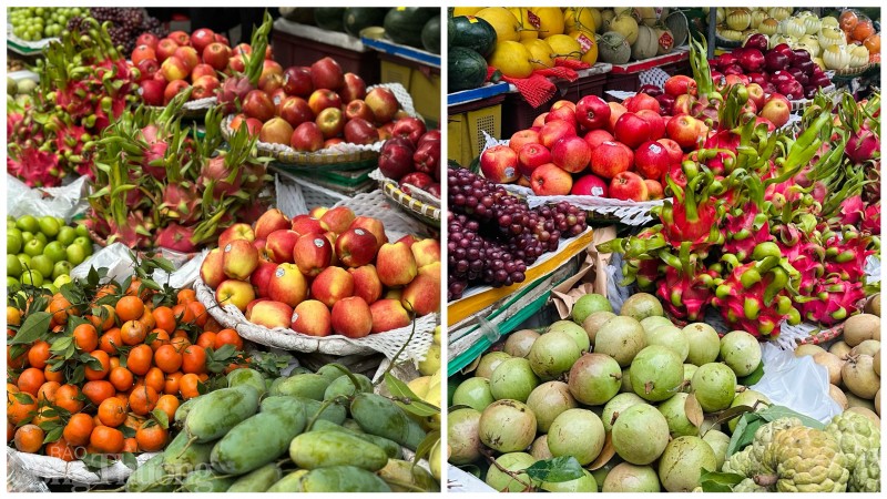 | Hoa quả được bày bán đa dạng, đẹp mắt phục vụ nhu cầu của người dân. Giá hoa quả những ngày này tăng mạnh so với ngày thường |