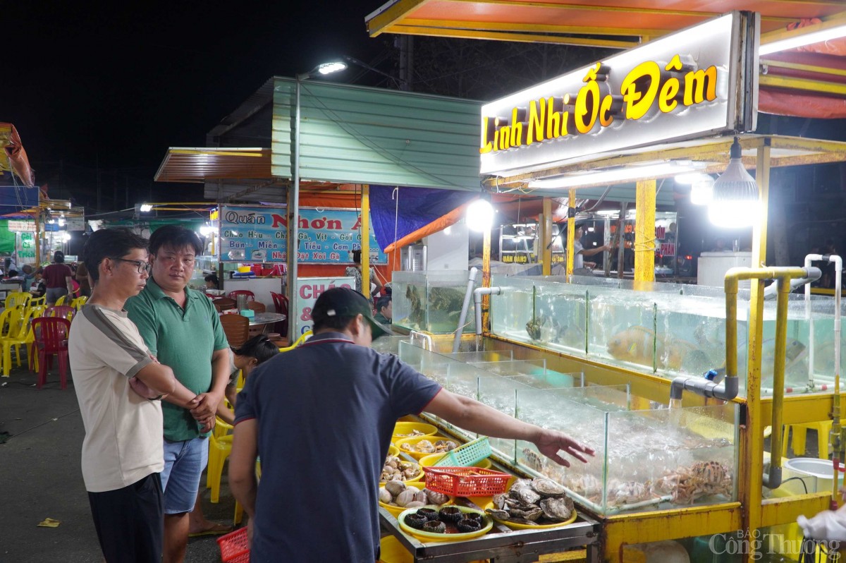 Ông Bùi Văn Sơn - tiểu thương kinh doanh trong chợ đêm cho biết, ông người quê TP. Hải Phòng, lập nghiệp ở Côn Đảo từ năm 2001 và làm nghề buôn bán hải sản. Ông bắt đầu kinh doanh tại chợ đêm từ năm 2022 đến nay. “Mỗi tháng tiền thuê ki-ôt là 6 triệu đồng. Quán nhà tôi bán hải sản chế biến ăn tại chỗ hoặc mua mang đi. Mùa này, khách du lịch đông, hàng hóa bán tốt. Từ tháng 6 trở đi là mùa thấp điểm du lịch, khách ít và bán kém hơn”, ông Sơn tâm sự.