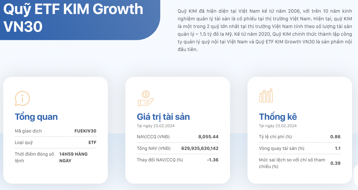 | Thông tin về Quỹ ETF KIM Growth VN30 (Ảnh: Koreainvestment.com.vn) |