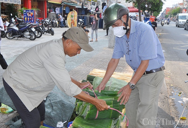 Nhiều người dân mua lá dong trên đường Cánh Mạng Tháng Tám, phường 7, quận Tân Bình |