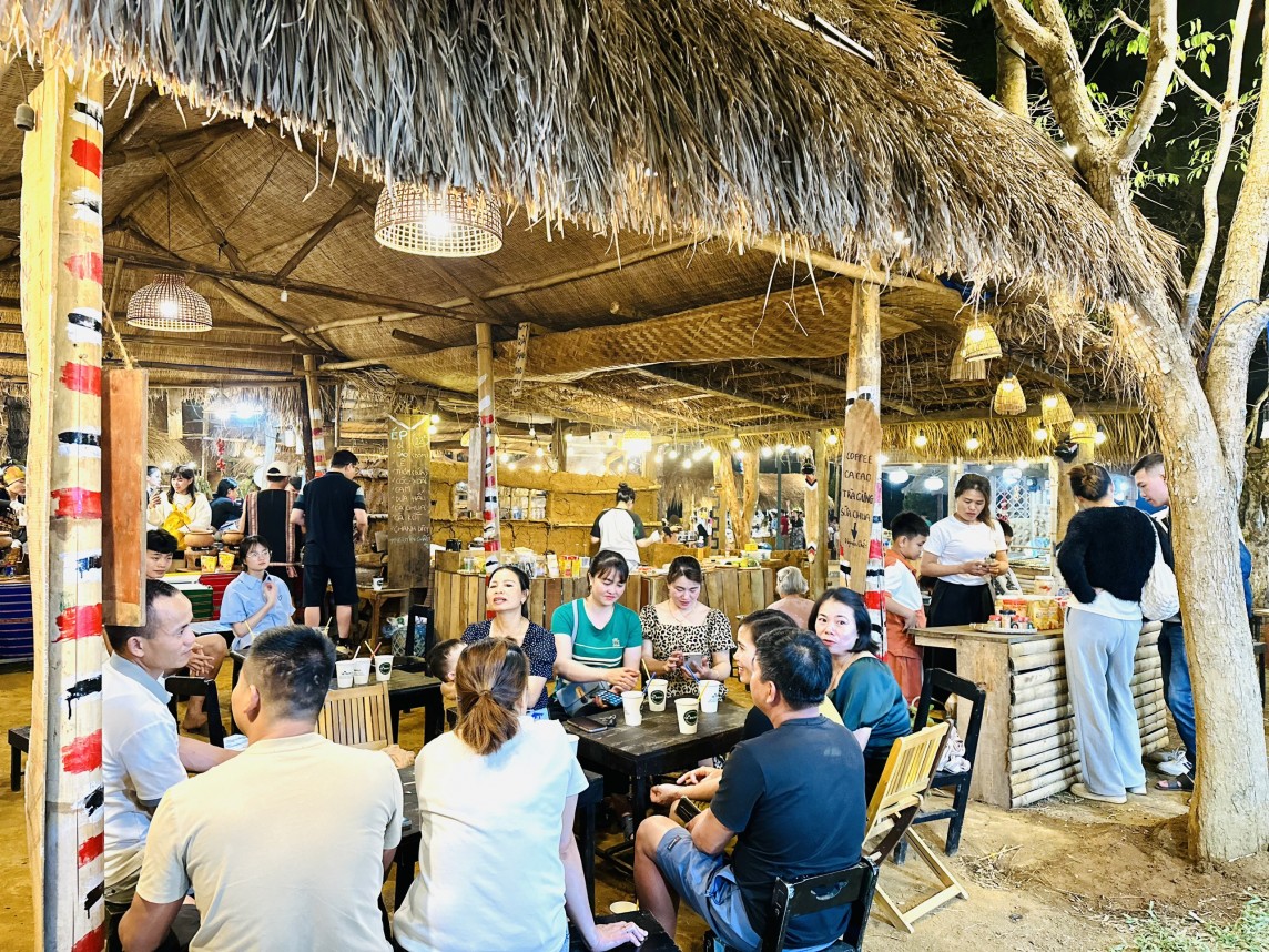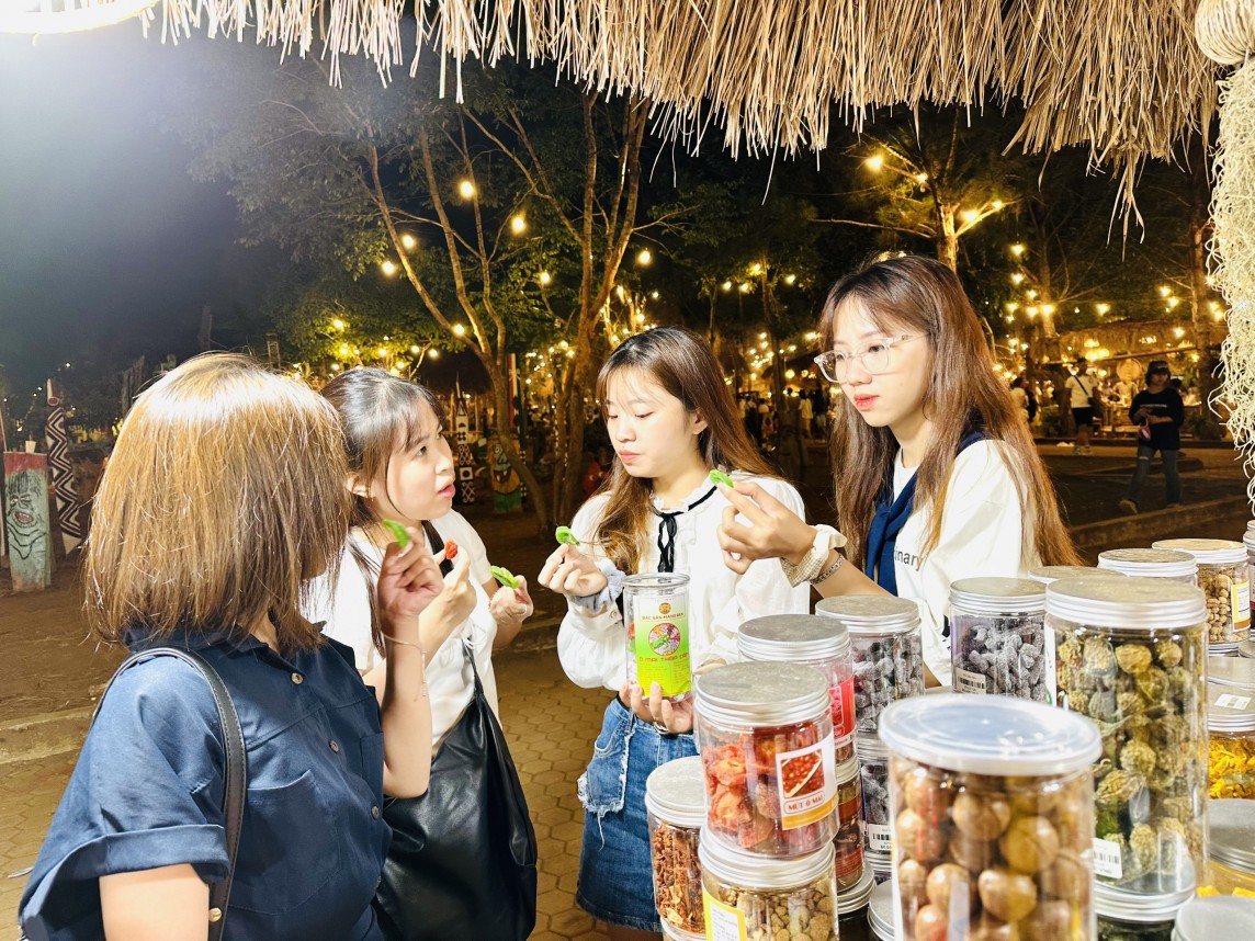 | Ngoài việc mua sắm, thưởng thức các món ẩm thực độc đáo, du khách cảm thấy rất thú vị và ấn tượng khi được trải nghiệm các hoạt động như gói bánh sừng trâu, tìm hiểu về dệt thổ cẩm truyền thống, học đàn t’rưng, tham gia các chương trình văn nghệ hoặc hòa mình vào nhịp xoang giữa đại ngàn cùng tiếng cồng chiêng vang vọng. |