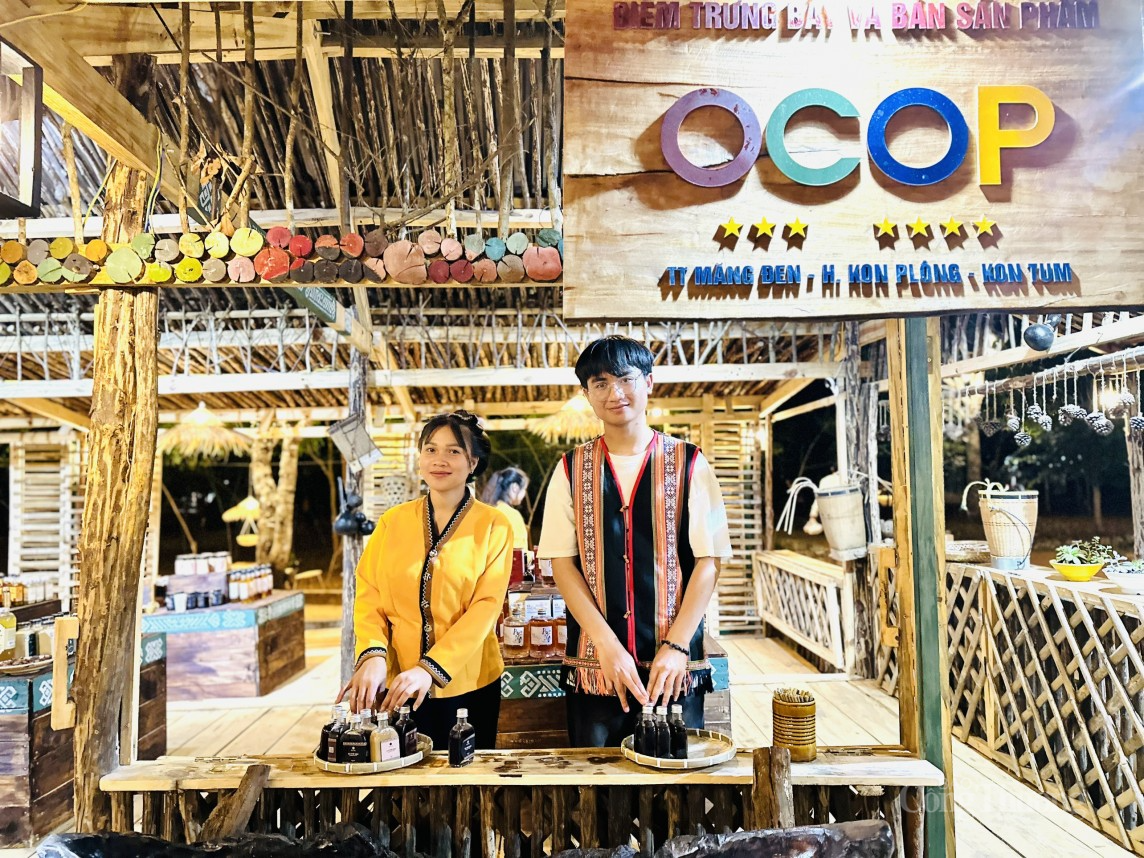 | Tại Chợ phiên, các gian hàng được thiết kế và trang trí mang nét riêng của từng khu vực với nhiều sản phẩm OCOP đặc trưng của địa phương, các loại dược liệu (hồng đẳng sâm, đương quy, sơn tra, chè dây, tinh bột nghệ, chuối hột), các mặt hàng nông sản (cà phê, mắc ca, gạo đỏ…); thực phẩm khô (măng le, trâu khô, bò khô, thịt heo hun khói…); các gian hàng ẩm thực đặc trưng của địa phương. |