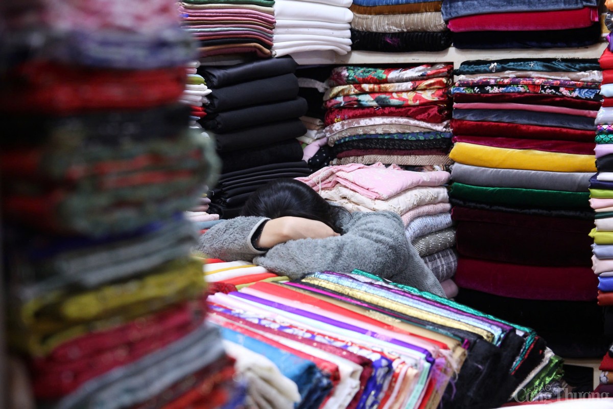 | Khu vực bán vải may mặc tại chợ Đồng Xuân vẫn luôn tấp nập khách hàng. Nhiều người đã bắt đầu đi chọn vải để may áo dài đón Tết. |
