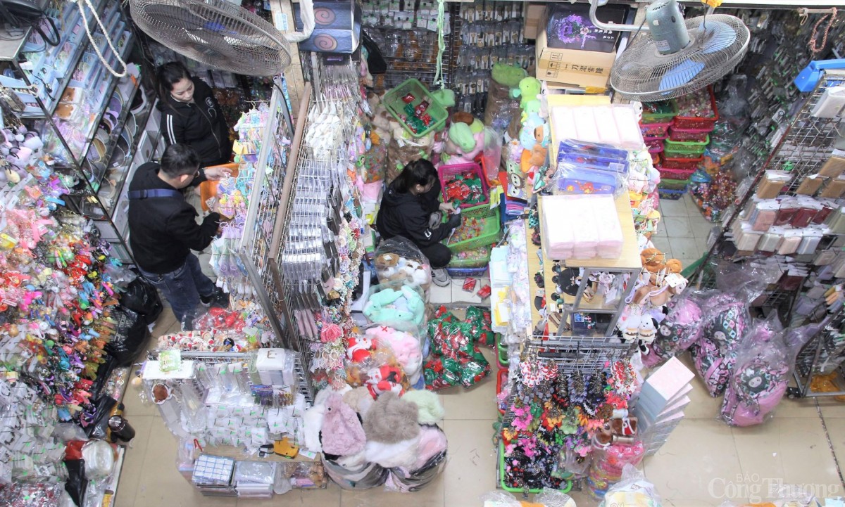| Chị Mai - tiểu thương tại chợ cho biết, những ngày gần đây, khách mua hàng Tết luôn đông đúc, vì vậy chị phải thuê thêm người đóng hàng cho khách sỉ, bán hàng cho khách lẻ và chốt đơn trên các sàn thương mại điện tử. "Khách ở chợ chủ yếu là khách buôn, khách lẻ cũng có nhưng khá ít", chị Mai chia sẻ. |