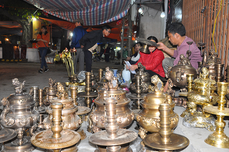 | Còn những chiếc lư hương, chân nến này chắc chắn mang lại may mắn cho cả người bán và người mua |
