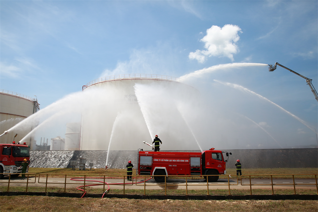 Kể từ khi tiếp nhận quản lý và vận hành NMLD Dung Quất, BSR đã xác định tầm quan trọng của công tác PCCC, đảm bảo an toàn tuyệt đối cho nhà máy. Do đó, NMLD Dung Quất được trang bị hệ thống PCCC hiện đại, với thiết kế tuân thủ tiêu chuẩn/quy chuẩn Việt Nam và các tiêu chuẩn quốc tế NFPA, API… về PCCC. Trong đó, thiết kế hệ thống PCCC tại nhà máy đã được thẩm duyệt trước khi thi công và cấp giấy đầy đủ các điều kiện về PCCC trước khi NMLD Dung Quất được đưa vào vận hành thương mại.