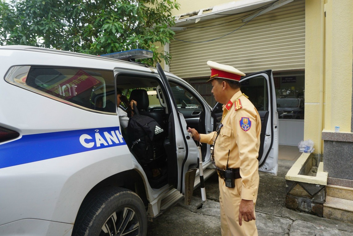 | Trạm CSGT Cửa ô Hoà Hiệp hỗ trợ đưa gia đình anh Duy đến địa điểm đón xe về quê (Ảnh: CTV) |