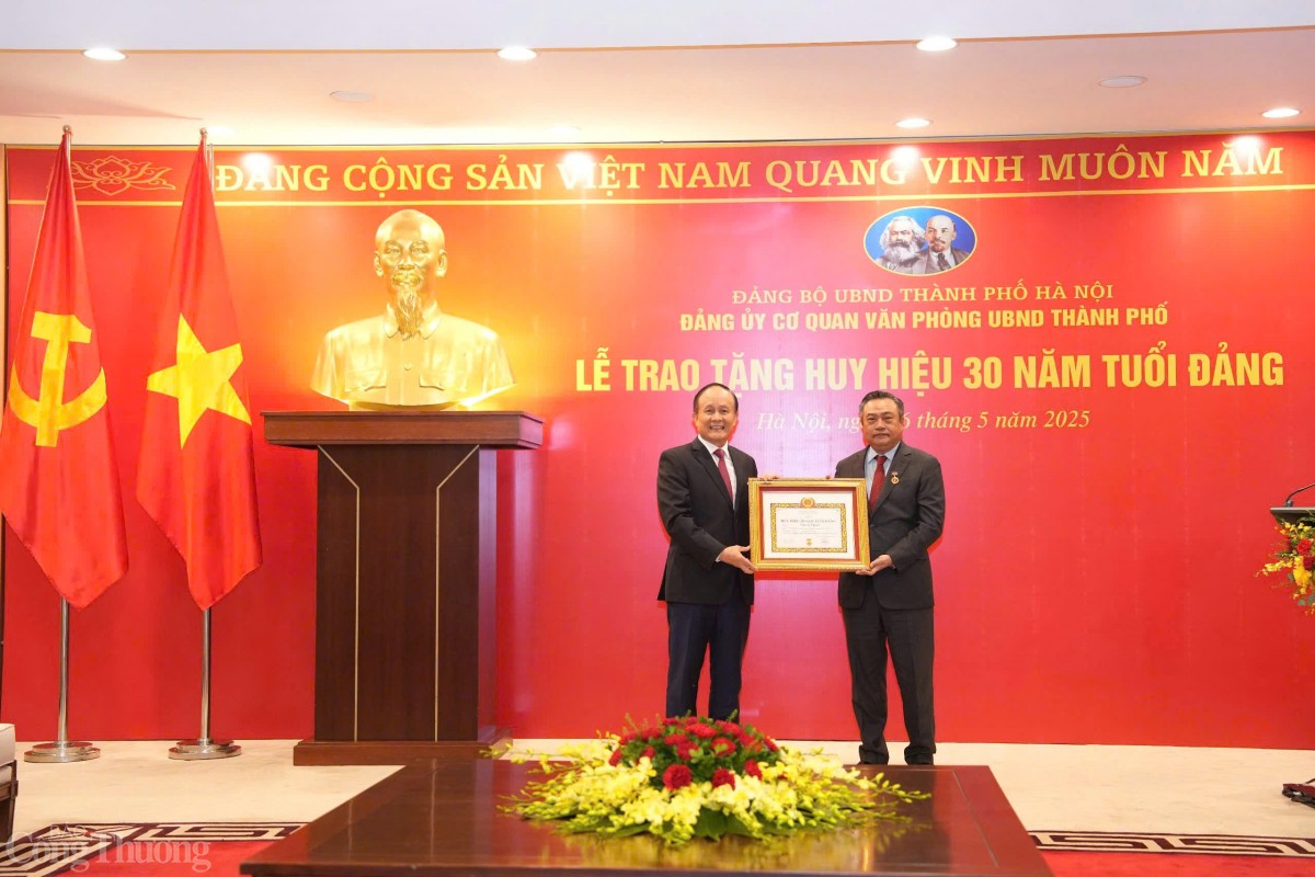 Chiều 16/5, Đảng ủy cơ quan Văn phòng UBND TP. Hà Nội tổ chức Lễ trao Huy hiệu Đảng đợt 19/5 tặng đồng chí Trần Sỹ Thanh - Ủy viên Trung ương Đảng, Phó Bí thư Thành ủy, Bí thư Đảng ủy UBND Thành phố, Chủ tịch UBND TP. Hà Nội.