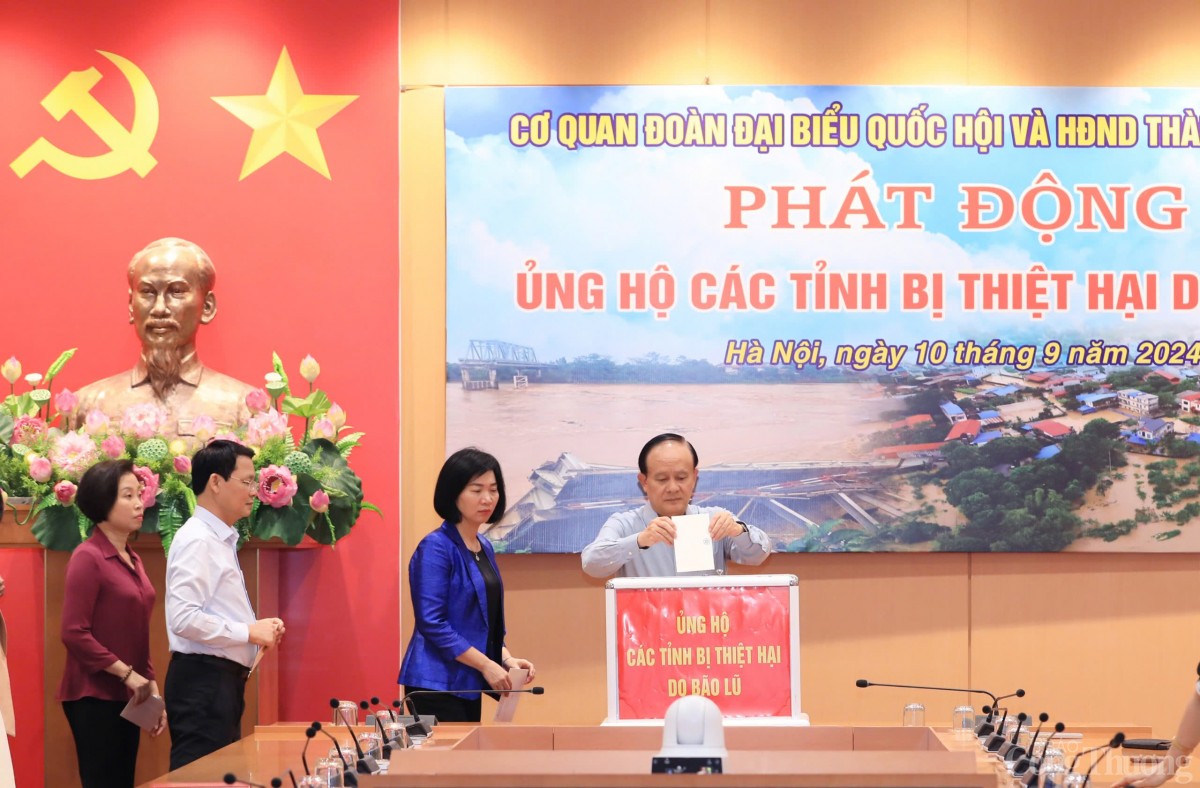 * Cùng ngày, hưởng ứng lời kêu gọi “Nhân dân Thủ đô tham gia ủng hộ các tỉnh bị thiệt hại do bão lũ” do Ủy ban MTTQ Việt Nam thành phố Hà Nội phát động, với tinh thần “Hà Nội vì cả nước, Hà Nội cùng cả nước”, chiều 10/9, cơ quan Đoàn ĐBQH và HĐND thành phố Hà Nội tổ chức quyên góp, ủng hộ nhân dân vùng bị thiệt hại do bão lũ gây ra nhằm chia sẻ khó khăn với các tỉnh, thành phố.