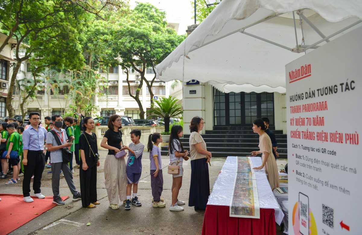 Bạn đọc xếp hàng để nhận ấn bản đặc biệt của Báo Nhân Dân in tranh panorama Chiến dịch Điện Biên Phủ. Ảnh: Thế Đại |