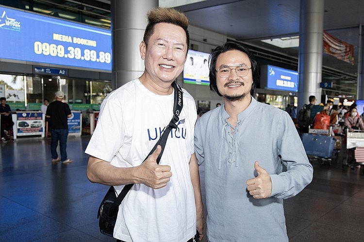 | Đạo diễn Hoàng Nhật Nam (phải) đón Chủ tịch Miss Grand International (trái) tại sân bay |