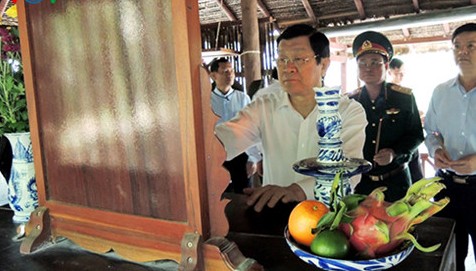 | Chủ tịch nước Trương Tấn Sang thắp hương tưởng nhớ các vị lãnh đạo cách mạng tại Di tích Trung ương Cục Miền Nam |