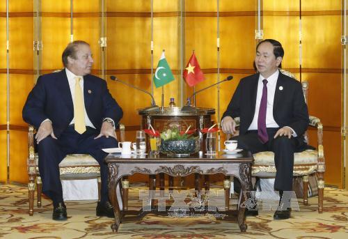 Tại cuộc gặp Thủ tướng Pakistan Nawar Sharif, Chủ tịch nước Trần Đại Quang khẳng định Việt Nam coi trọng quan hệ hữu nghị hợp tác với Pakistan. Trong bối cảnh hai nước kỷ niệm 45 năm thiết lập quan hệ ngoại giao (8/11/1972 - 8/11/2017), Chủ tịch nước bày tỏ mong muốn hai bên thúc đẩy các hoạt động thiết thực, tăng cường giao lưu, trao đổi đoàn các cấp nhân dịp này.