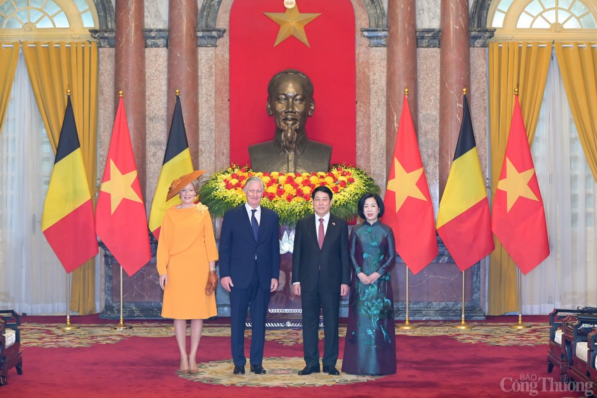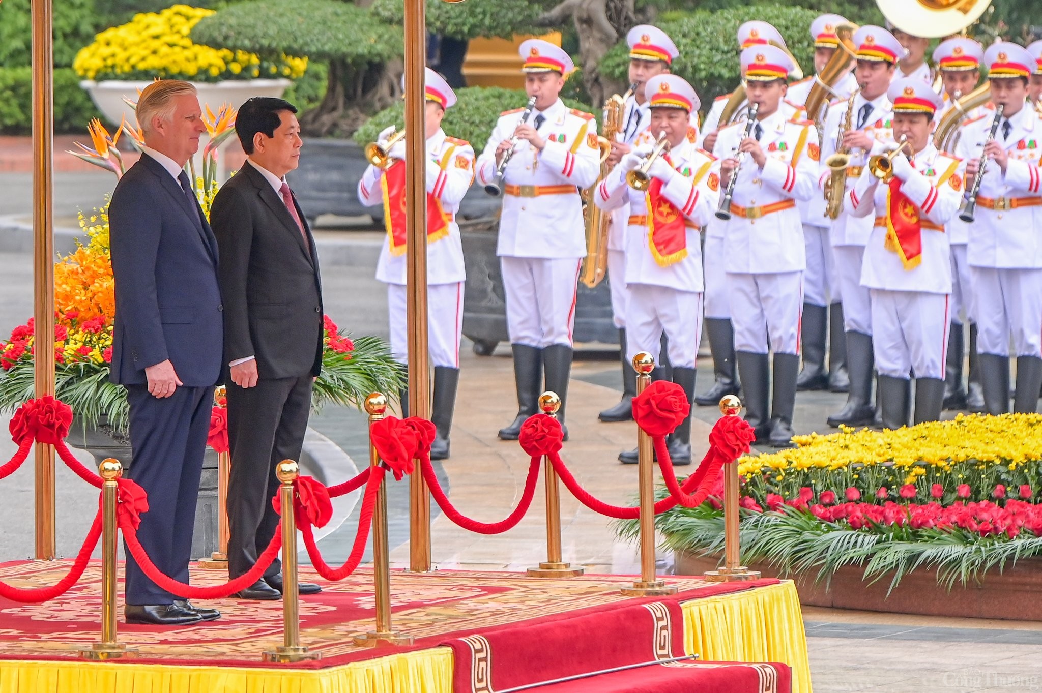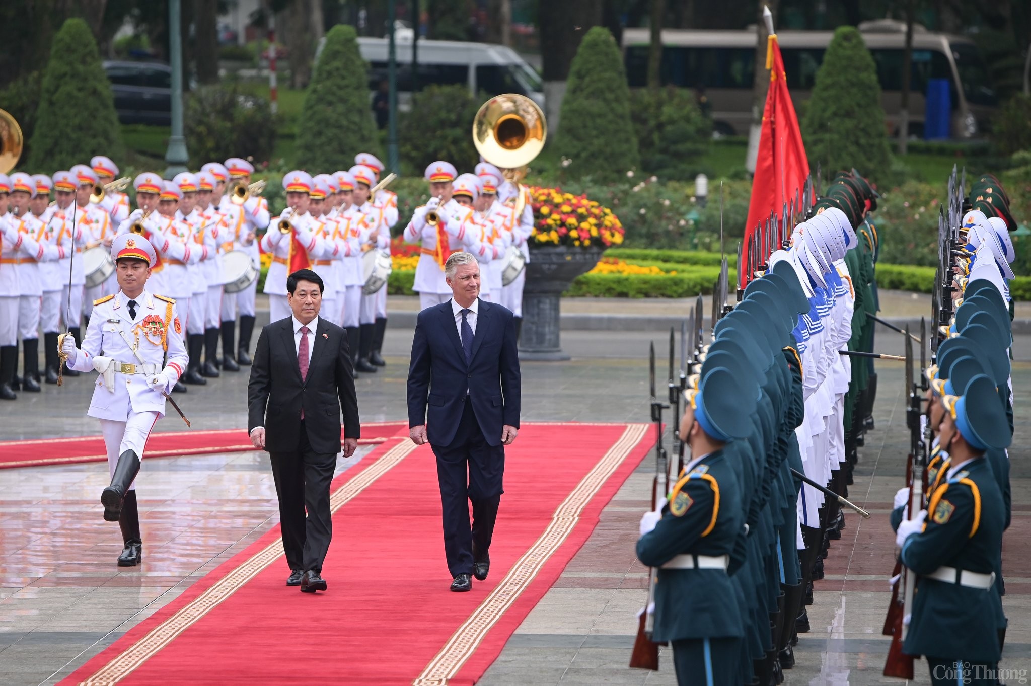 | Chủ tịch nước Lương Cường và Phu nhân chủ trì lễ đón Nhà vua Bỉ Philippe và Hoàng hậu Mathilde thăm cấp Nhà nước đến Việt Nam. Ảnh: Hoàng Hòa |