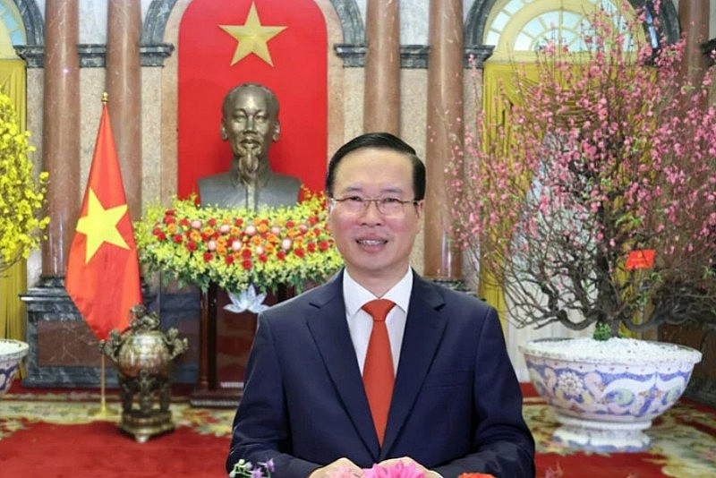 | Chủ tịch nước Võ Văn Thưởng chúc Tết Giáp Thìn 2024. (Ảnh: TTXVN) |