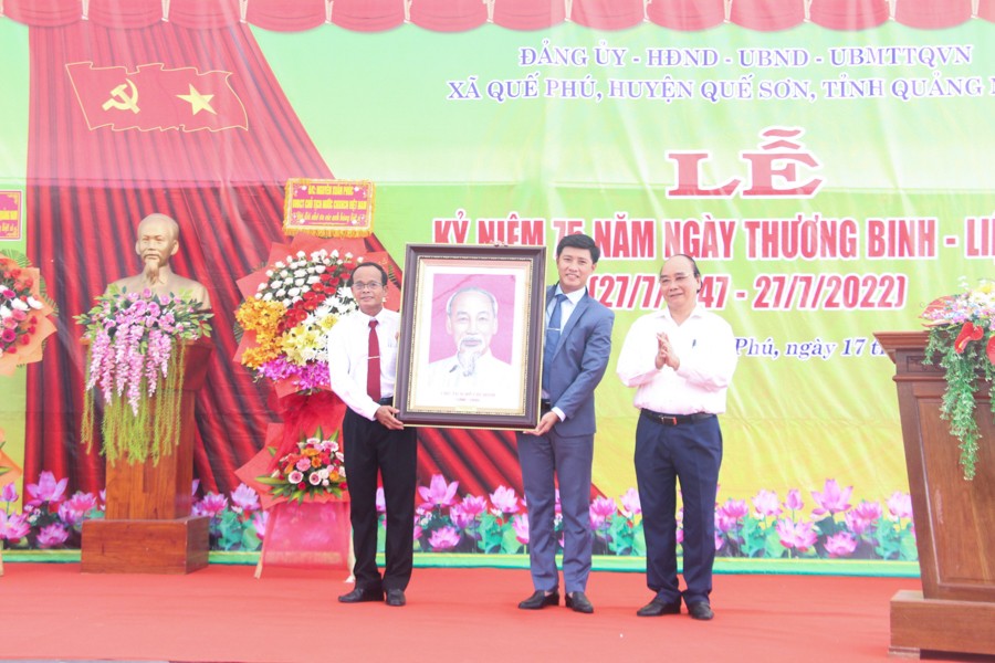 Dịp này, Chủ tịch nước Nguyễn Xuân Phúc cũng đã trao tặng nhiều suất quà cho các gia đình thương binh, liệt sĩ trên địa bàn xã Quế Phú và đến dâng hoa, thắp hương tại Nhà bia ghi danh các anh hùng liệt sĩ xã Quế Phú, huyện Quế Sơn, tỉnh Quảng Nam.