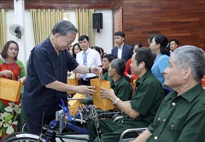 Nhân kỷ niệm 77 năm Ngày Thương binh - Liệt sỹ (27/7/1947 – 27/7/2024), Chủ tịch nước Tô Lâm cùng Đoàn công tác Trung ương đã tới thăm, tặng quà thương, bệnh binh tại Trung tâm Điều dưỡng thương binh Thuận Thành, tại xã Ninh Xã, huyện Thuận Thành, tỉnh Bắc Ninh.