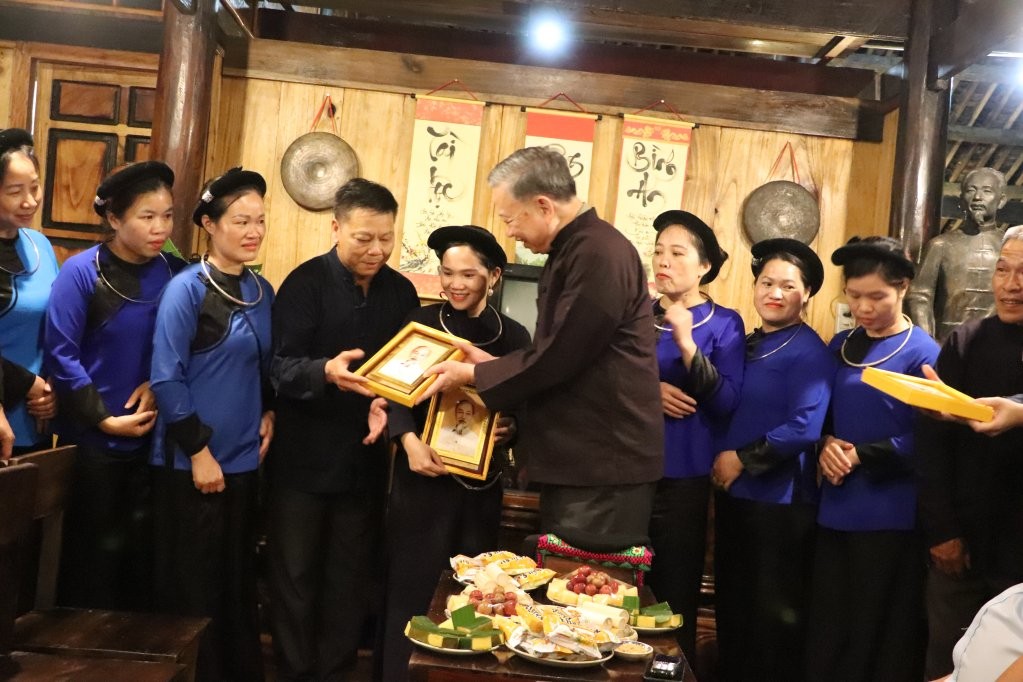 Chủ tịch nước cũng đề nghị bà con quan tâm giữ gìn, phát huy bản sắc văn hóa dân tộc, bảo tồn trang phục, làn điệu dân ca; tích cực phối hợp, giúp đỡ Bộ đội Biên phòng thực hiện nhiệm vụ quản lý, bảo vệ biên giới, xây dựng đường biên giới hòa bình, hữu nghị, phát triển… Đồng thời, ủng hộ mong muốn của người dân về phát triển xóm Pác Bó thành làng du lịch cộng đồng, phục vụ du khách trong nước và quốc tế.