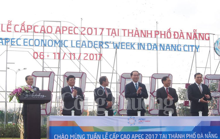 | Chủ tịch nước Trần Đại Quang bấm nút khởi động đồng hồ đếm ngược chào mừng Tuần lễ cấp cao APEC 2017 |