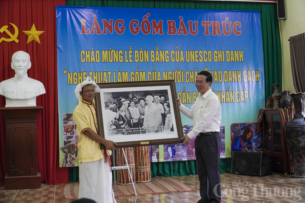 Hiện nay, người Chăm ở tỉnh Ninh Thuận và tỉnh Bình Thuận còn duy trì nghề thủ công làm gốm truyền thống tại làng gốm Bàu Trúc, huyện Ninh Phước, tỉnh Ninh Thuận và làng gốm Bình Đức, huyện Bắc Bình, tỉnh Bình Thuận. Sản phẩm gốm Chăm được sản xuất để phục vụ nhu cầu tiêu dùng, nhu cầu tín ngưỡng của cộng đồng cũng như làm quà tặng, trang trí các công trình nghệ thuật. Nghề làm gốm của người Chăm không chỉ đơn thuần là kỹ thuật sản xuất, tạo ra sản phẩm cụ thể mà ở đó hội tụ, chứa đựng rất nhiều bí quyết, kỹ năng, kinh nghiệm được trao truyền từ đời này qua đời khác tạo thành một nghệ thuật, đó là “Nghệ thuật làm gốm của người Chăm”. Với những giá trị được ghi nhận từ Nghệ thuật làm gốm của người Chăm, ngày 29/11/2022, tổ chức UNESCO đã chính thức ghi danh “Nghệ thuật làm gốm của người Chăm vào Danh sách di sản văn hóa phi vật thể cần bảo vệ khẩn cấp”. Sự kiện này đã được Bộ Văn hóa, Thể thao và Du lịch công bố là 1 trong 10 sự kiện văn hóa, thể thao và du lịch tiêu biểu trong năm 2022. |