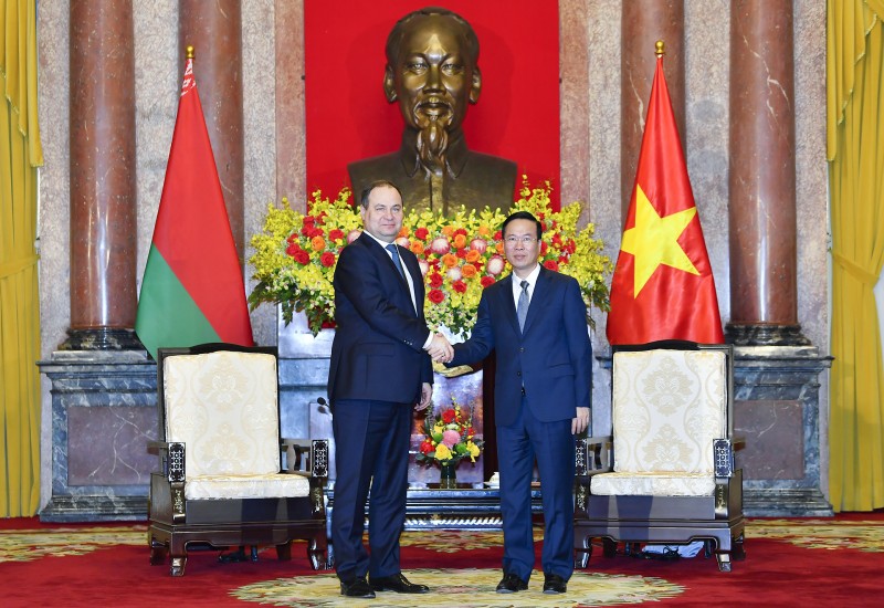 Chủ tịch nước Võ Văn Thưởng và Thủ tướng Roman Golovchenko nhất trí sẽ thúc đẩy các Bộ, ngành, địa phương hai nước thực hiện tốt các thỏa thuận đạt được tại hội đàm giữa hai Thủ tướng, để làm sâu sắc hơn quan hệ hữu nghị truyền thống và hợp tác nhiều mặt giữa Việt Nam và Belarus.