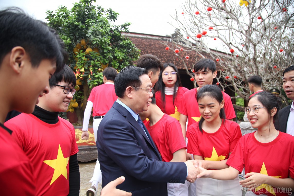 | Chủ tịch Quốc hội Vương Đình Huệ cùng Đoàn công tác chụp ảnh lưu niệm cùng đoàn viên, thanh niên |