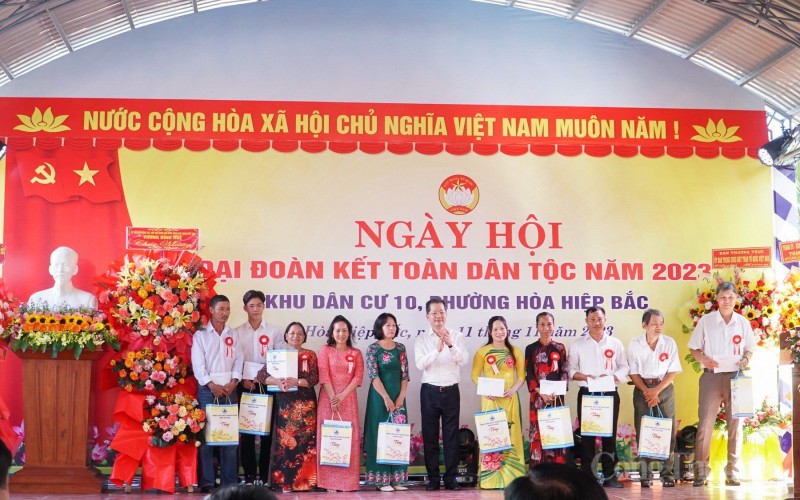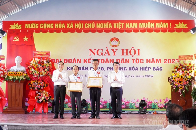| Lãnh đạo TP. Đà Nẵng trao tặng Bằng khen cho Khu dân cư số 10 vì có thành tích xuất sắc trong thực hiện Cuộc vận động “Toàn dân đoàn kết xây dựng nông thôn mới, đô thị văn minh” năm 2023. |