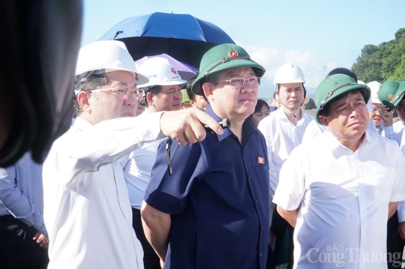 Chủ tịch Quốc hội Vương Đình Huệ kiểm tra các hạng mục thi công. |