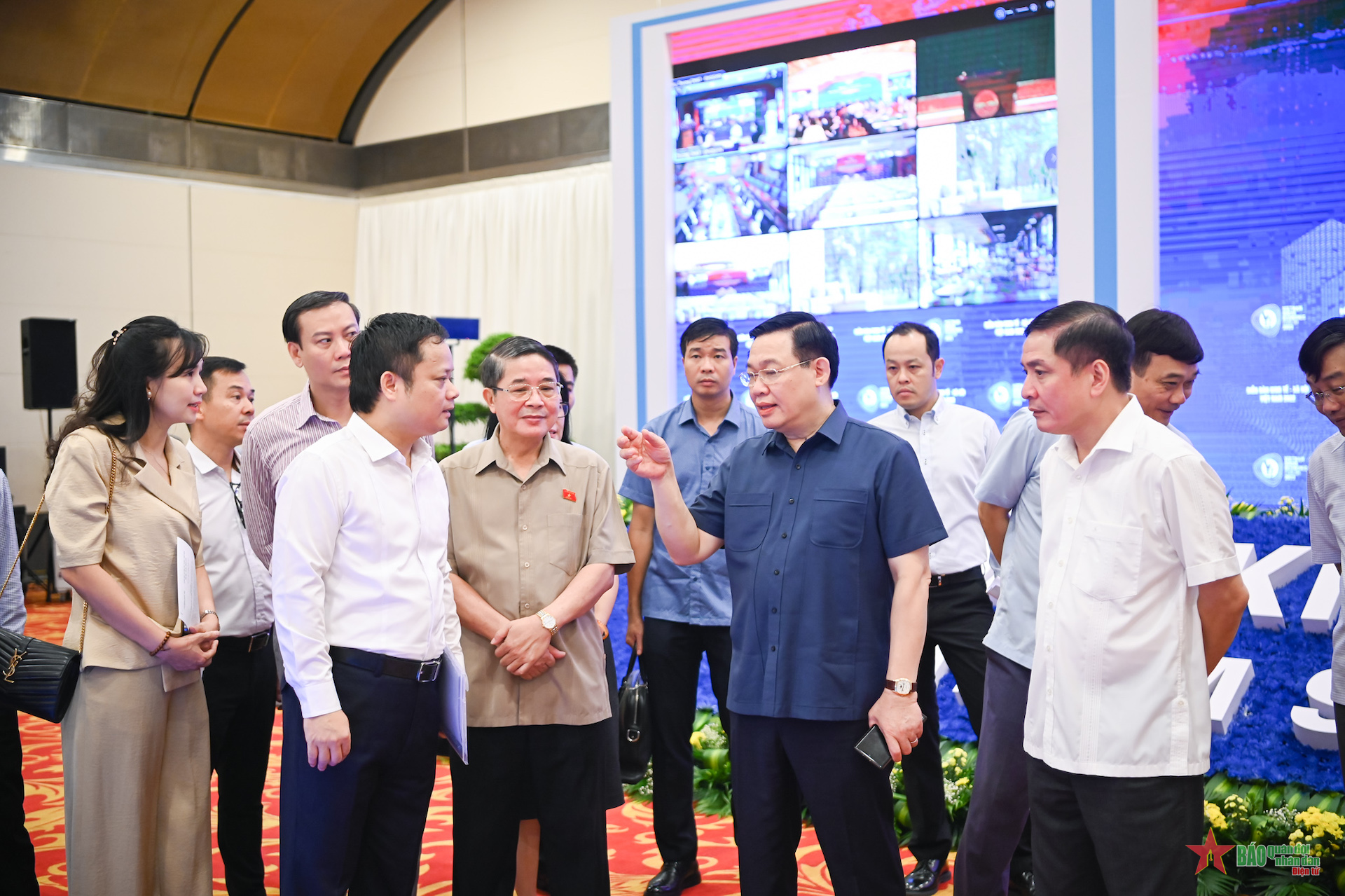 | Chủ tịch Quốc hội đi kiểm tra công tác chuẩn bị diễn đàn. Ảnh: LÂM HIỂN |