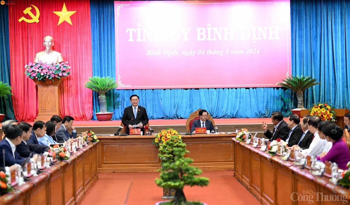 Chủ tịch Quốc hội nêu rõ, Đảng, Nhà nước hết sức quan tâm, tạo điều kiện để vùng Bắc Trung Bộ và duyên hải Trung Bộ, trong đó có tỉnh Bình Định phát triển. Bộ Chính trị đã ban hành Nghị quyết số 26 về phát triển kinh tế - xã hội và bảo đảm quốc phòng, an ninh vùng Bắc Trung Bộ và duyên hải Trung Bộ đến năm 2030, tầm nhìn đến năm 2045. Quốc hội ban hành Nghị quyết số 81/2023/QH15 về Quy hoạch tổng thể quốc gia thời kỳ 2021 - 2030, tầm nhìn đến năm 2050.
