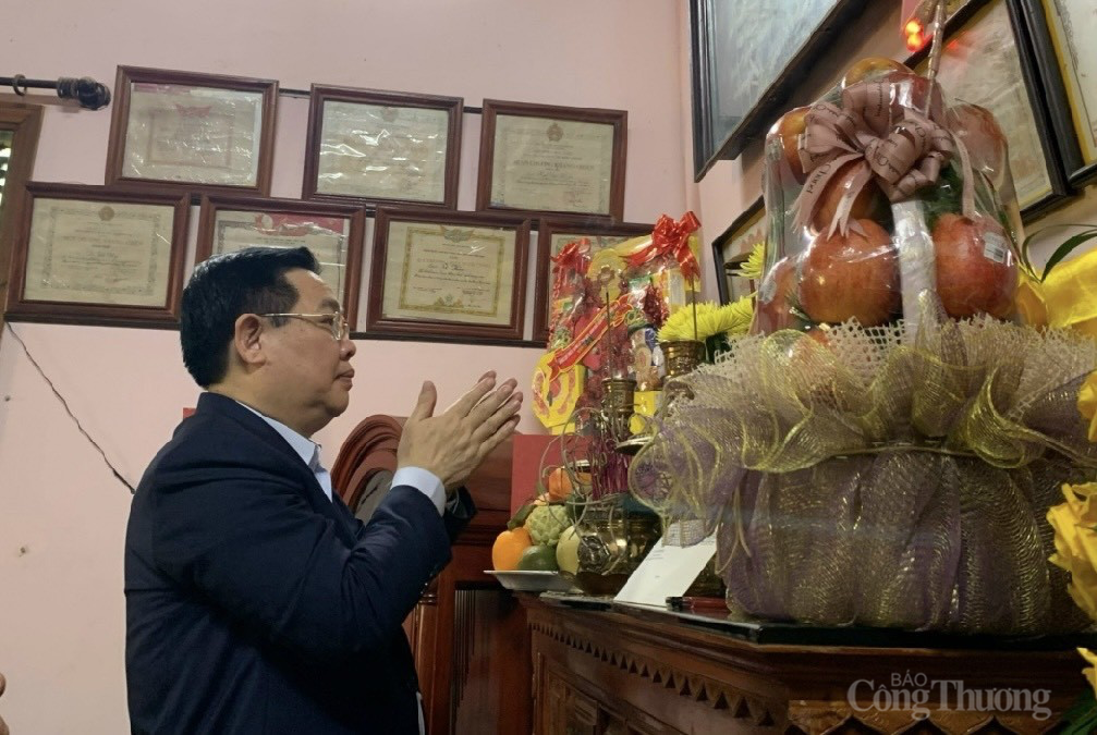 | Chủ tịch Quốc hội Vương Đình Huệ thắp hương tại bàn thờ cửa gia đình chính sách bà Lê Thị Ngô, TP. Gia Nghĩa, tỉnh Đắk Nông. Ảnh: CTV |