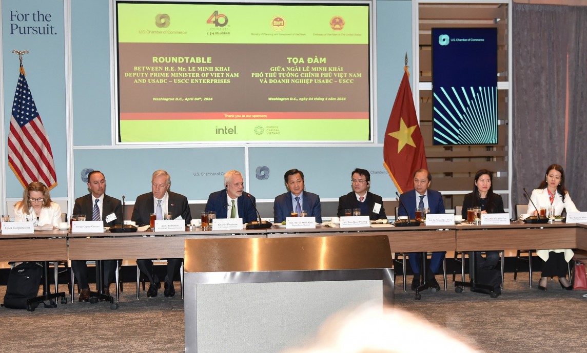 Trước đó, tham dự Tọa đàm doanh nghiệp do Phòng Thương mại Hoa Kỳ (USCC) và Hội đồng kinh doanh Hoa Kỳ - ASEAN (USABC) đồng chủ trì với sự tham gia của gần 30 doanh nghiệp hàng đầu của Hoa Kỳ trong lĩnh vực công nghệ, năng lượng tái tạo, hàng không, y tế…, Phó Thủ tướng đánh giá cao các doanh nghiệp Hoa Kỳ đã quan tâm đầu tư tại Việt Nam.