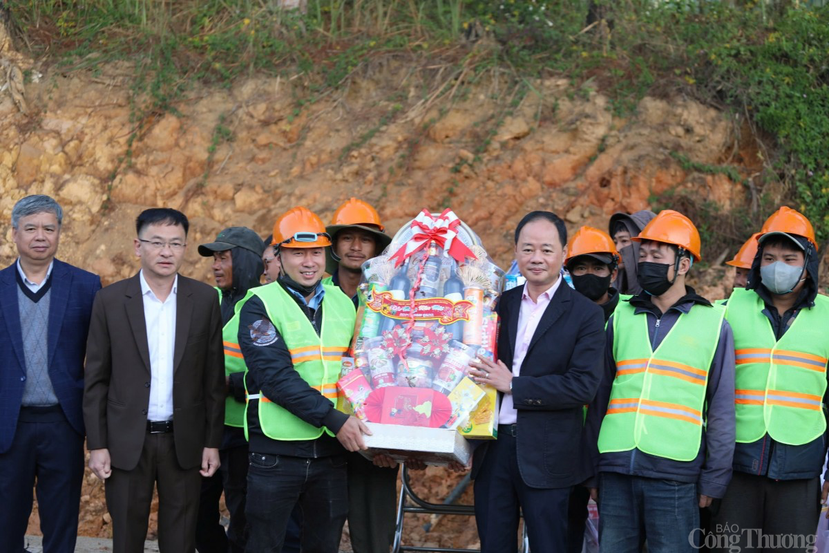 Nhân dịp chuẩn bị đón Tết Nguyên đán Ất Tỵ 2025, ông Trần Hồng Thái đã tặng quà và gửi lời chúc Tết đến toàn thể công nhân đang làm việc tại công trình. “Thời gian cận Tết nhưng anh em vẫn ở lại để cùng với tỉnh hoàn thành cung đường này. Tôi đề nghị doanh nghiệp tạo điều kiện thuận lợi và chăm lo đời sống cho công nhân yên tâm làm việc ngoài giờ. UBND TP. Đà Lạt sẽ hỗ trợ doanh nghiệp để đảm bảo tiến độ thi công công trình kịp tiến độ” - Ông Trần Hồng Thái nhấn mạnh.