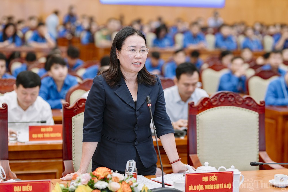 | Bà Nguyễn Thị Quỳnh Hương - Giám đốc Sở Lao động, Thương binh và Xã hội tỉnh Thái Nguyên phát biểu tại hội nghị - Ảnh: TN |