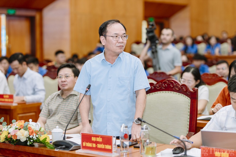 | Giám đốc Sở Thông tin và Truyền thông tỉnh Thái Nguyên Đỗ Xuân Hoà trao đổi tại hội nghị - Ảnh: TN |