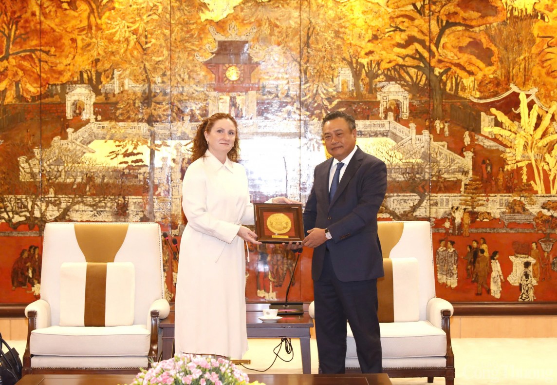 | Chủ tịch UBND thành phố Hà Nội Trần Sỹ Thanh tiếp tân Đại sứ New Zealand Caroline Beresford |