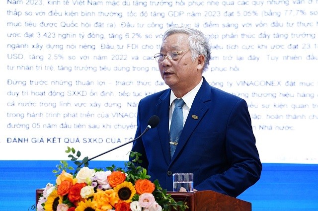 | Ông Đào Ngọc Thanh, Chủ tịch Hội đồng quản trị Vinaconex phát biểu tại cuộc họp quan trọng của năm 2024. (Ảnh: BTC) |