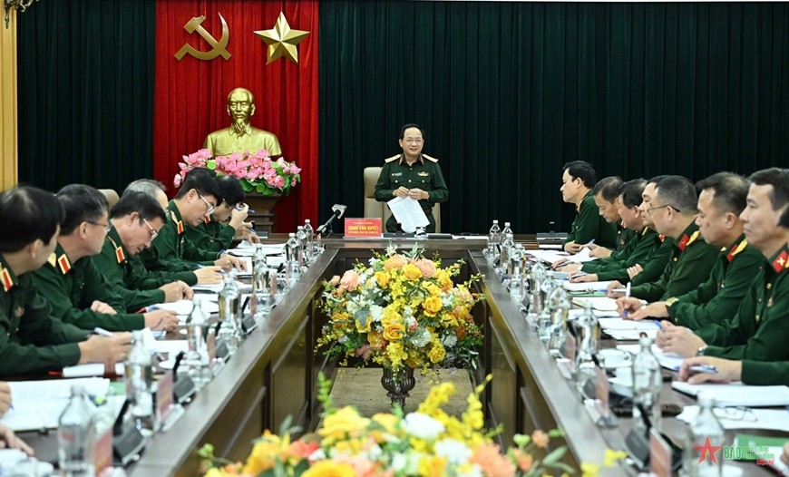 | Thượng tướng Trịnh Văn Quyết chủ trì buổi làm việc. - Ảnh: QĐND |