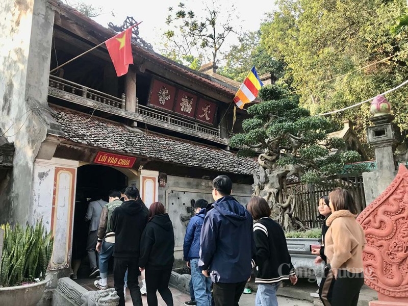 | Du khách tấp nập tham quan, chiêm bái chùa Thầy |