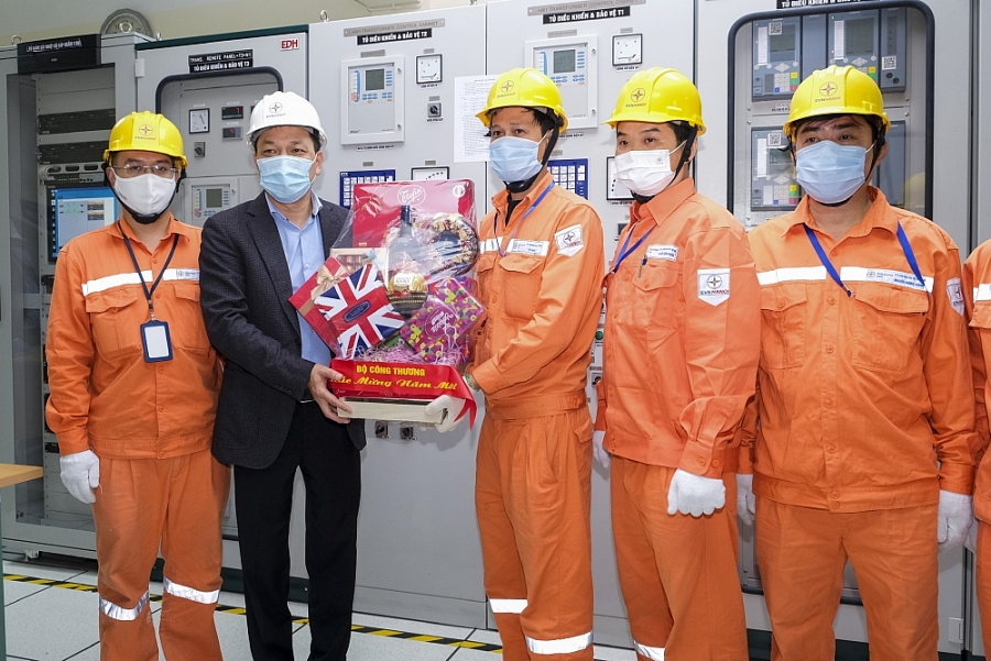 | Thay mặt lãnh đạo Bộ Công Thương, Thứ trưởng Đặng Hoàng An tặng quà các cán bộ công nhân viên trực ca tại trạm biến áp 500 KV Thường Tín- Hà Nội |