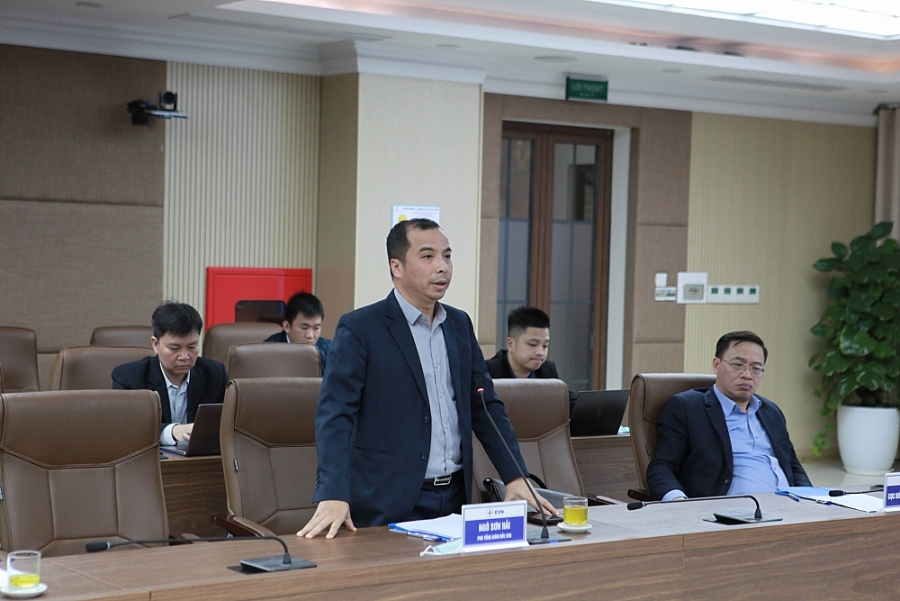 | Ông Ngô Sơn Hải - Phó Tổng giám đốc EVN - báo cáo tại buổi làm việc |