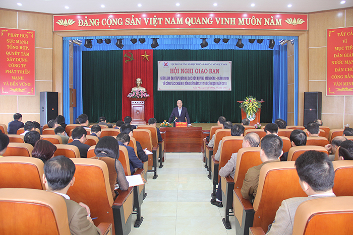 Phát biểu tại hội nghị, Tổng Giám đốc Đặng Thanh Hải cho rằng, năm 2017 thị trường tiêu thụ than khó khăn do EVN giảm sản lượng các nhà máy nhiệt điện dẫn đến giảm khoảng 5 triệu tấn than cấp cho điện cùng với thị trường than cạnh tranh gay gắt nên công tác tiêu thụ vẫn khó khăn. Tuy nhiên, từ Tập đoàn đến các đơn vị đã có nhiều nỗ lực cố gắng, khắc phục khó khăn, thực hiện các chỉ tiêu kế hoạch SXKD. Về chỉ đạo điều hành tháng 12, các đơn vị rà soát các chỉ tiêu kế hoạch, tập trung hoàn thành cao nhất; thực hiện tốt công tác ATVSLĐ, không để xảy ra TNLĐ và sự cố thiết bị nghiêm trọng; phối hợp với địa phương đảm bảo ANTT, tài nguyên than; chú trọng đảm bảo việc làm, tiền lương cho người lao động kịp thời, không thấp hơn 2016; Tập đoàn sẽ giải quyết cho các đơn vị khó khăn về tài chính. Về kế hoạch 2018, các đơn vị cân đối sản xuất và tiêu thụ, xây dựng các chỉ tiêu kế hoạch sát với thực tế; sản xuất các chủng loại than chất lượng cao, đáp ứng nhu cầu khách hàng; các đơn vị sản xuất than hầm lò có trách nhiệm tuyển sinh đào tạo thợ lò theo tỷ lệ Trường Cao đẳng TKV 80%; đơn vị 20%...