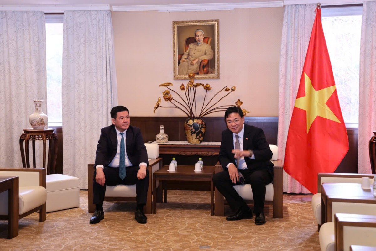 Bộ trưởng Bộ Công Thương Nguyễn Hồng Diên tặng quà lưu niệm Đại sứ Phạm Quang Hiệu